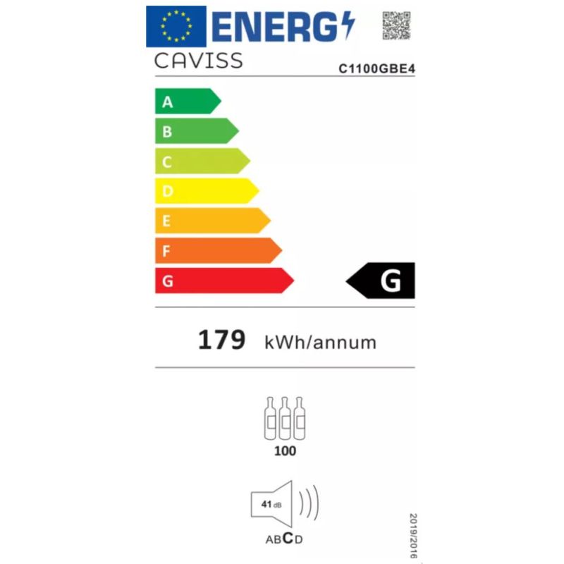 Cave à vin Caviss C1100GBE4 - Cave à vin de service - 100 bouteilles - 1 zone - Standard (Plus de 41 dB) - L x H x P: 58 x 148.5 x 65 cm - Noir