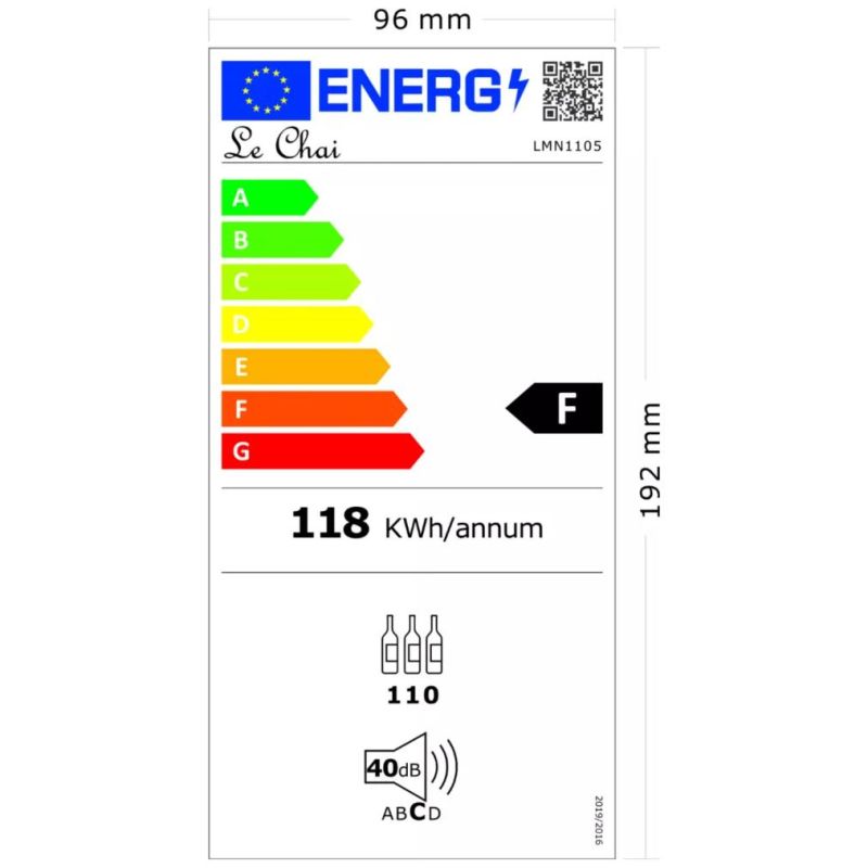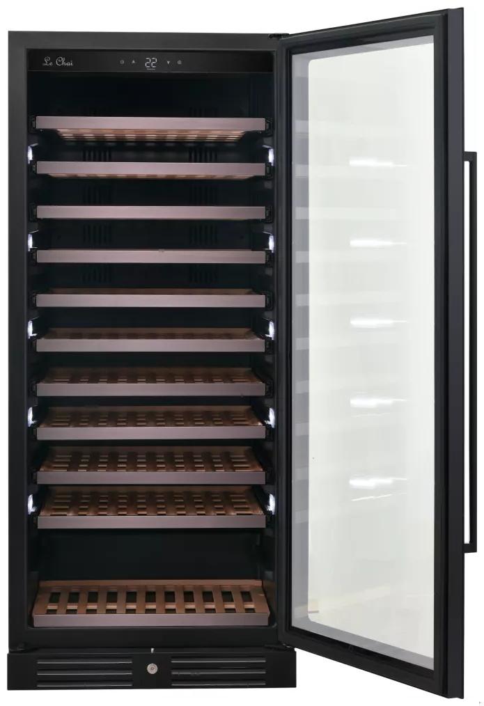 Cave à vin Le Chai LMN1105 - Cave à vin de service - 110 bouteilles - 1 zone - Silencieux (38 à 40 dB) - L x H x P: 59.5 x 139.5 x 68 cm - Noir