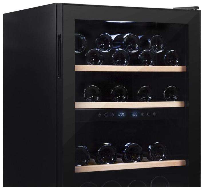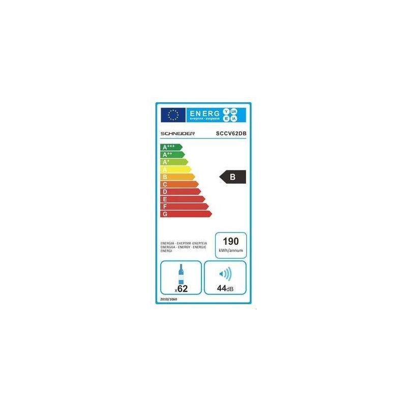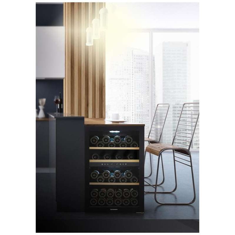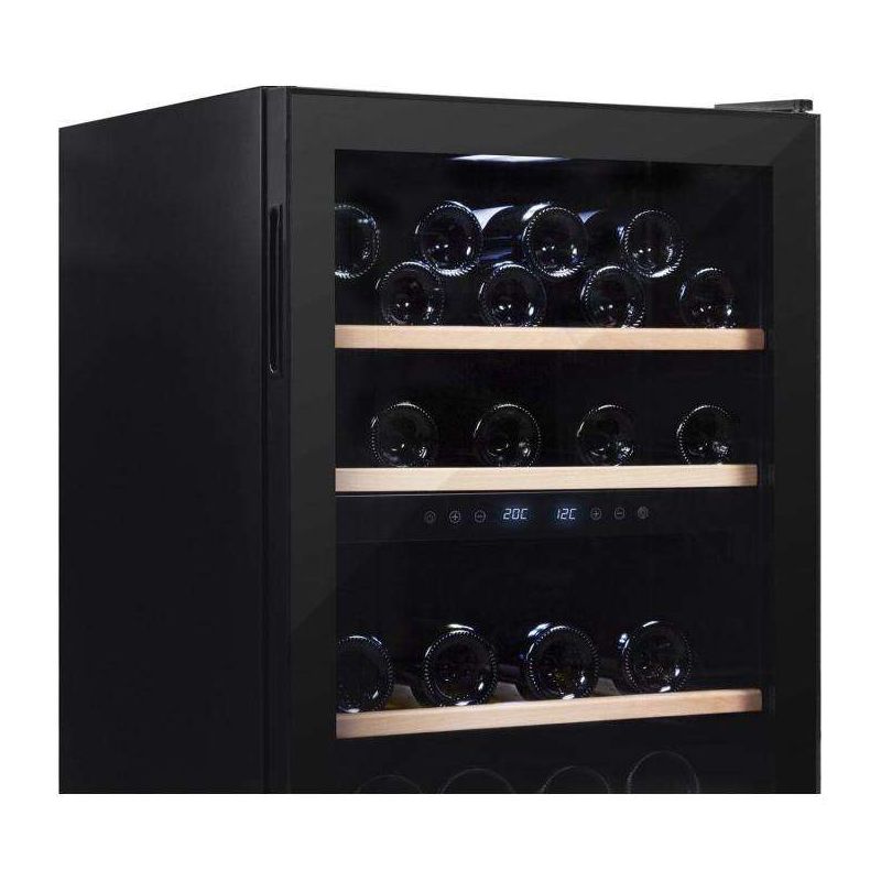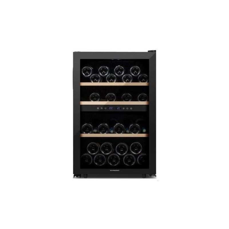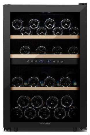 Cave à vin Schneider SCCV62DB - Cave à vin de service - 62 bouteilles - 3 clayettes - 2 zones - 44 dB - L x H x P : 55 x 88 x 56,5 cm - Noir