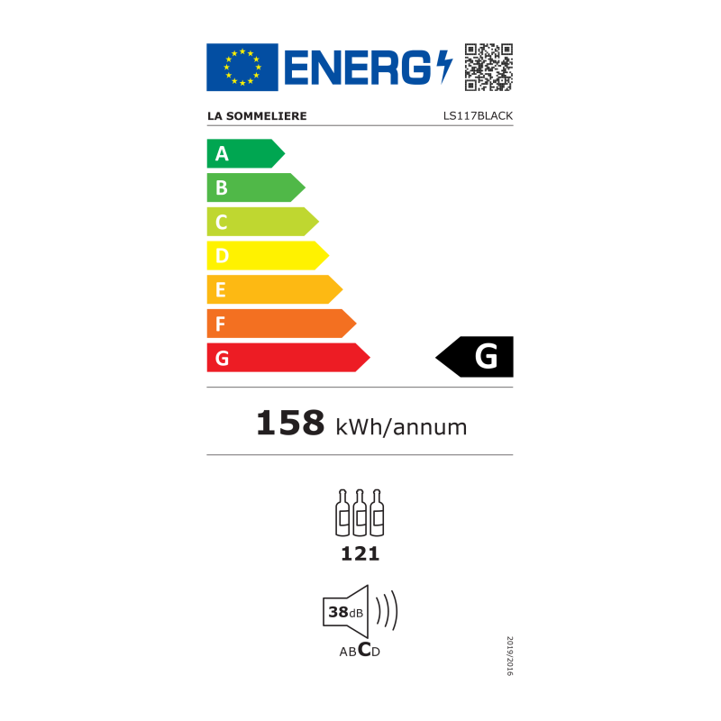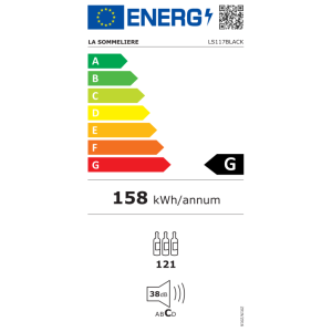 Cave à vin La Sommelière LS117BLACK - Cave à vin de service - 121 bouteilles - 5 clayettes - 1 zone - L x H x P: 55 x 127,7 x 56,5 cm - Noir