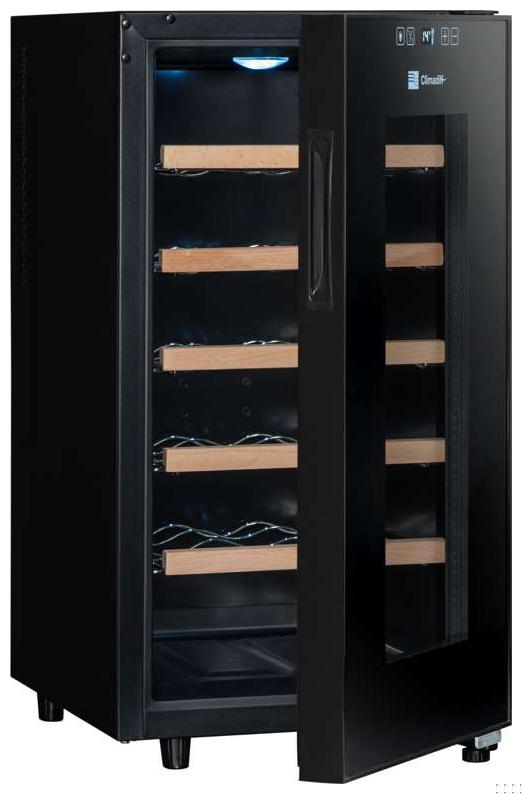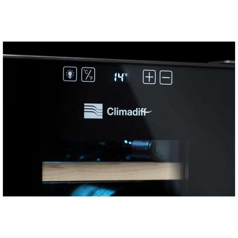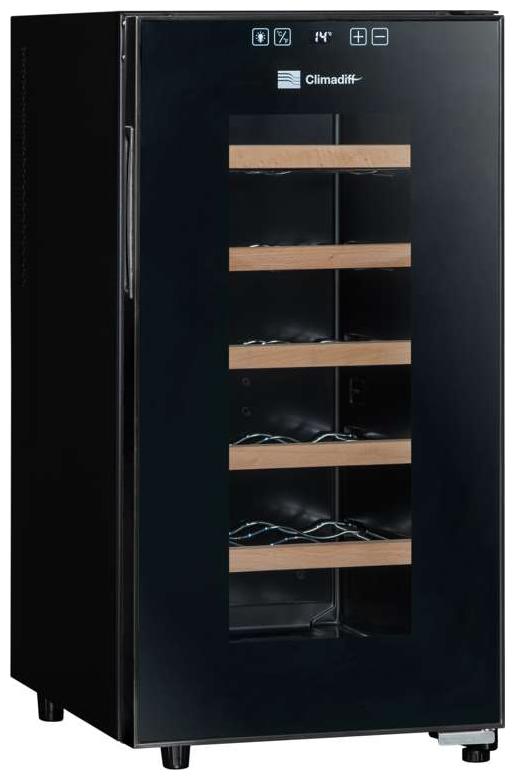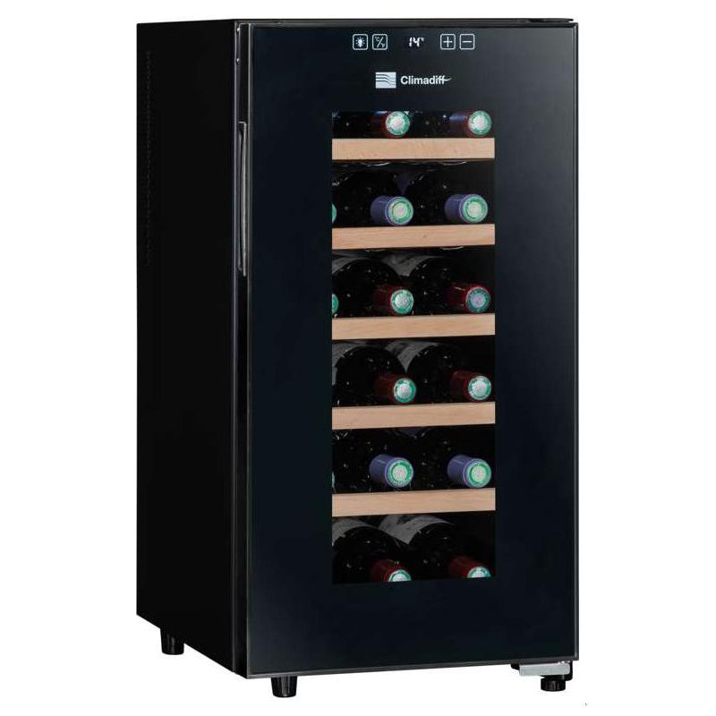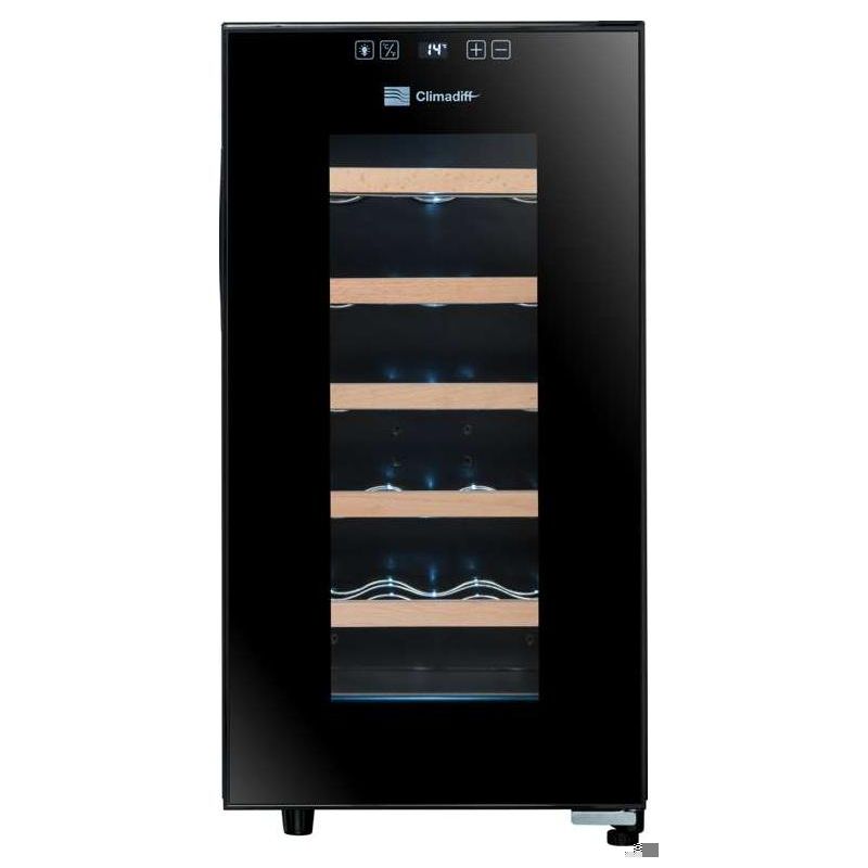Cave à vin Climadiff CC18F - Cave à vin de service - 18 bouteilles - 5 clayettes - 1 zone - L x H x P: 34,5 x 67 x 48,5 cm - Noir