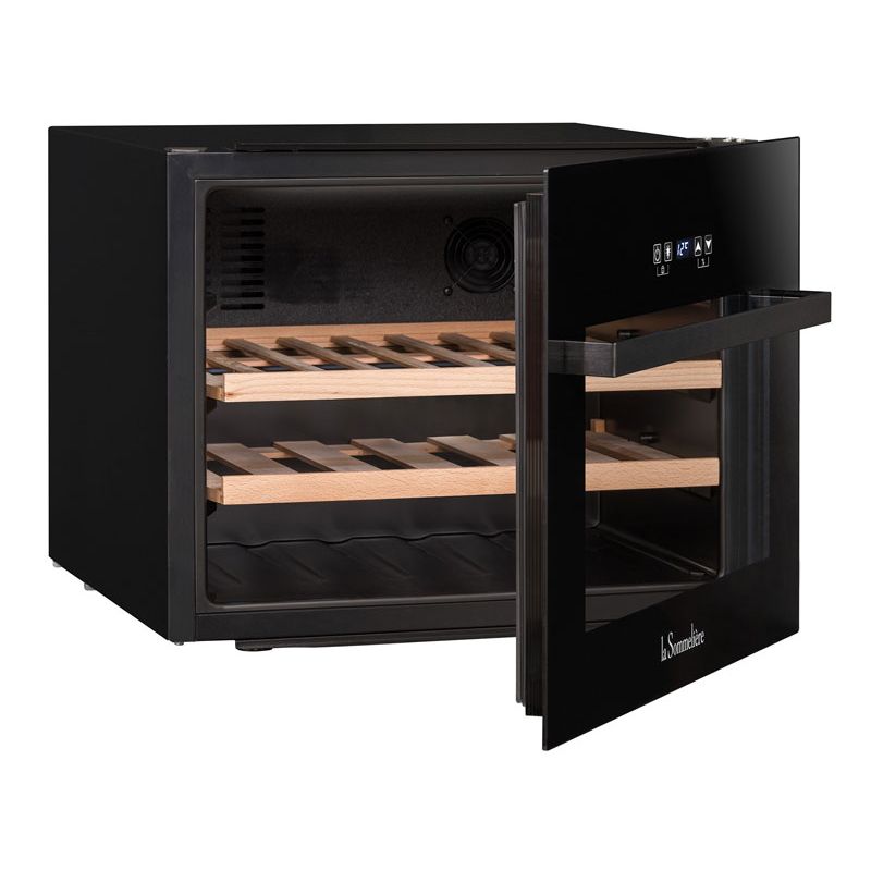 Cave à vin La Sommelière LSBI28B - Cave à vin de service - 28 bouteilles - 2 clayettes - 1 zone - 38 dB - L x H x P: 59 x 45,5 x 56,3 cm - Noir
