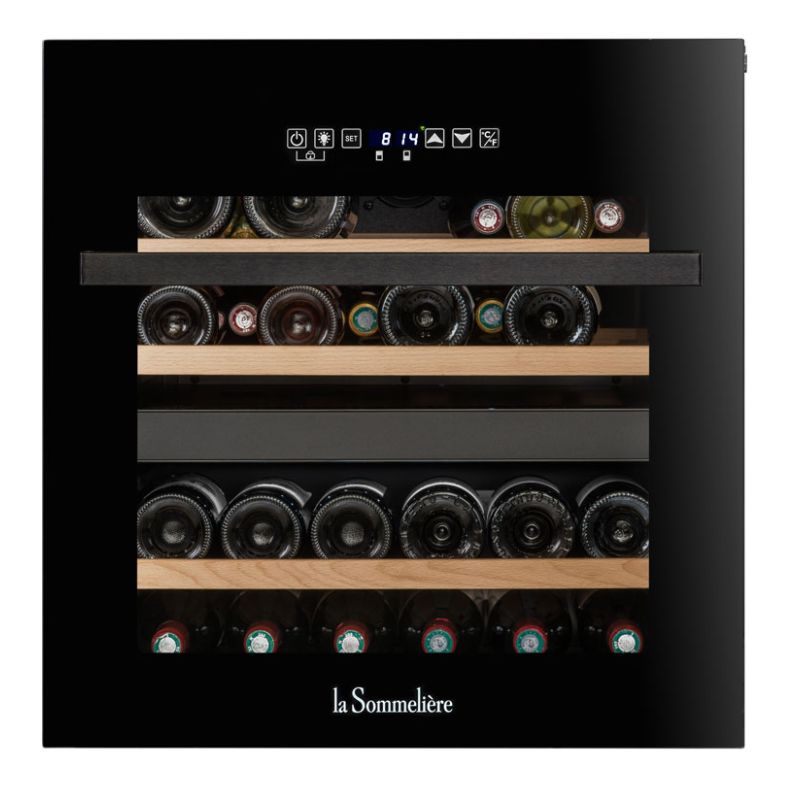 Cave à vin La Sommelière LSBI36BDZ - Cave à vin multi-températures - 36 bouteilles - 3 clayettes - 2 zones - 37 dB - L x H x P: 59 x 59,5 x 56,3 cm - Noir