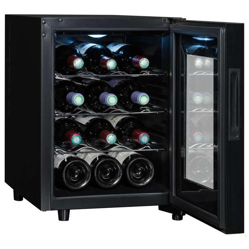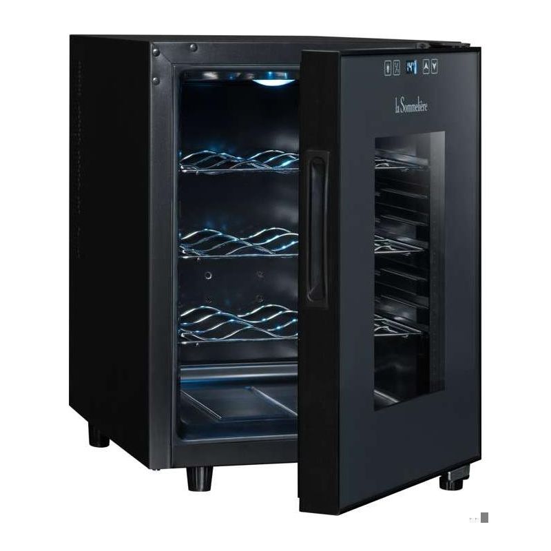 Gamme hybrides - Cave à vin La Sommelière LS12Silence - Cave à vin de service - 12 bouteilles - 1 zone - 26 dB - L x H x P: 34,5 x 46 x 48 cm - Noir